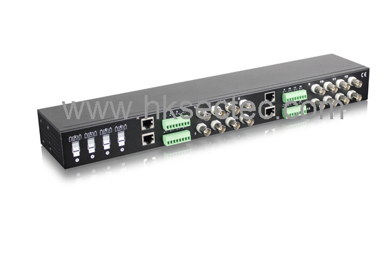 used as either transmitter or receiver,it receives 16 channel video signals and provides 16 channels